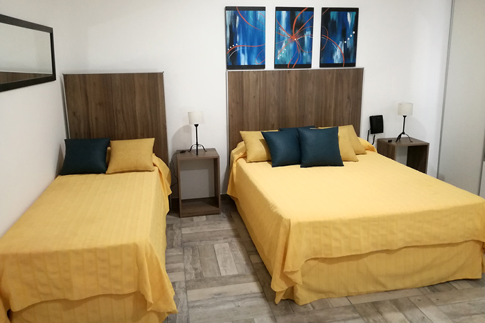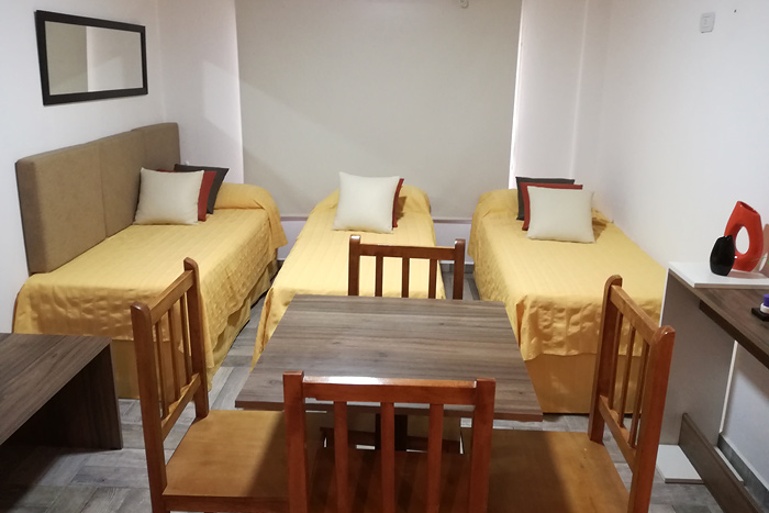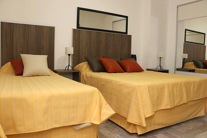 El Hotel dispone de 21 habitaciones, 18 de dos ambientes y 3 de un ambiente. Cada una de ellas cuenta con aire acondicionado, TV LED de 32", frigobar, baño privado, secador de pelo, caja de seguridad, amenities y servicio de mucama.
